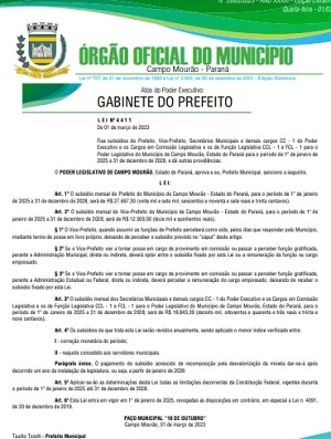 Já estão valendo, as leis que definem os salários dos políticos de Campo Mourão que se elegerem em 2024.