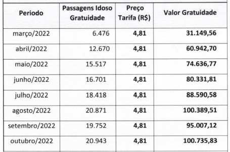 No projeto enviado à Câmara, a prefeitura incluiu uma projeção para 2023 com aumento no número de passagens para idosos. A previsão é que em maio sejam 23.102. Hoje a tarifa é de R$ 4,81.