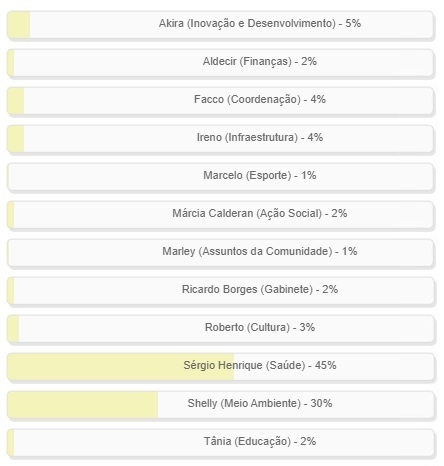"Dos secretários municipais de Campo Mourão, quem poderia sair candidato a prefeito em 2024?" Enquete encerrada neste domingo de Natal deu vitória Sérgio Henrique dos Santos (Saúde), com 45% dos votos. Shelly Nogueira (Meio Ambiente) ficou em segundo, com 30%. O resultado completo está no quadro acima.