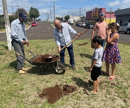 A prefeitura de Altamira do Paraná realizou o plantio de mudas de ipê, esta semana, na av. Francisco Barbosa Diniz.Foram 90 mudas de ipês amarelo, branco e roxo. O prefeito José Etevaldo Branco deu uma mãozinha no plantio. O vereador Nilsão e moradores também ajudaram.