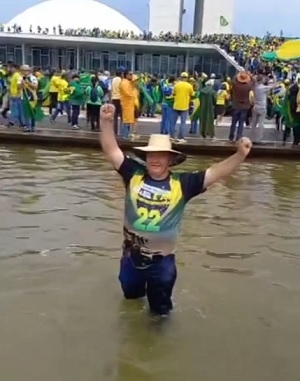 Não faltou gente da região neste domingo em Brasília, durante a manifestação que acabou chamada de terrorista devido à invasão e depredação do Palácio do Planalto, do Congresso Nacional e do Supremo Tribunal Federal. Esse aí, no espelho d"água do Congresso é morador de Ubiratã. O vídeo dele entrando na água e de outro ubiratanense num dos poderes invadidos rodou pelos grupos de Whatsapp da cidade.
