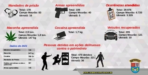 Houve aumento também no cumprimento dos mandados de prisão, de 149 para 178, sendo 83 realizados em Campo Mourão.