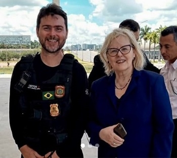 Quem está ao lado da presidente do STF, ministra Rosa Weber, é o mourãoense Alexandre Deitos. Como perito da Polícia Federal, ele participou dos trabalhos de perícia feitos em Brasília após as invasões e depredações no Congresso, Palácio do Planalto e Supremo. A ministra acompanhou o encerramento do trabalho da PF.