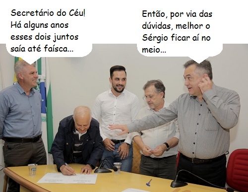 O clic é da visita do secretário de Estado da Saúde, Beto Preto, a Campo Mourão, na quinta-feira, O ex-vereador José Luiz Gurgel participou porque foi a família dele quem doou o terreno onde o governo vai construir a nova sede do Cis-Comcam. Aí, ficou ao lado do prefeito Tauillo Tezelli, a quem, no pasaado, fez dura oposição. O presidente da Câmara, Edilson Martins, e o secretário municipal da Saúde, Sérgio Henrique dos Santos, completam o balãozinho.