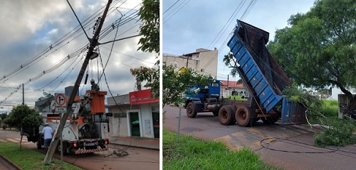 Caminhão com a caçamba levantada arrebenta fios e postes nas avenidas João Bento e Armelindo Trombini. Foi na madrugada desta segunda-feira. A ação teria sido feita por latrão que furtou o caminhão na empresa.