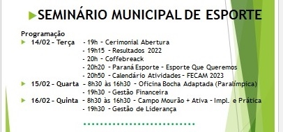 Começa nesta terça-feira (19h) o Seminário Municipal de Esportes de Campo Mourão.