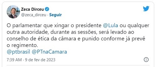 Zeca Dirceu (PT), deputado federal e líder da bancada do PT na Câmara Federal, em postagem feita em sua conta no Twitter; nesta quinta-feira, o que rendeu notas na mídia nacional.