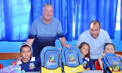 Mamborê - O ano letivo começou esta semana na rede municipal com a distribuição de mochila com kit escolar para todos os alunos. O prefeito Ricardo Radomski participou da entrega.