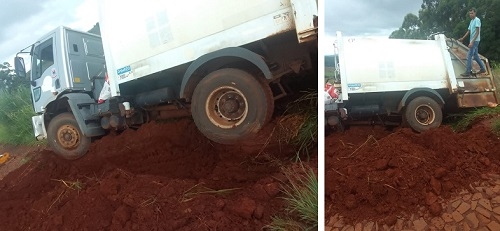 Um caminhão coletor de lixo da prefeitura de Campina da Lagoa encalhou nesta quinta-feira na estrada que dá acesso ao distrito de Bela Vista do Piquiri. Nas redes sociais, a administração municipal não poupou críticas ao DER, já que a estrada é estadual (PR-471). Diz que o trecho não recebe manutenção há décadas e que o município já ofereceu ajuda com mão-de-obra, mas não foi atendido.
