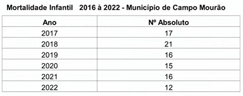 Depois de vários anos, Campo Mourão conseguiu ficar no que tinha sido pactuado para a mortlidade infantil.