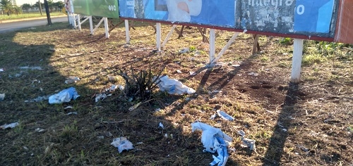 Trevo do terminal rodoviário de Campo Mourão. Quem faz a substituição das propagandas do outdoor, poderia recolher as substituídas.