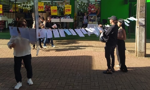 Com um "varal de poesias" montado no calçadão de Campo Mourão, a Associação Mourãoense de Escritores (AME) comemorou neste sabado o Dia dos Namorados. A ação foi iniciativa das associadas Zilma, Dolores, Mariângela, Araceles, Cristina, Dalva e Nivalda, que distribuíram poemas aos enamorados que passaram pelo local.