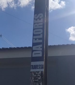 Placa no jardim Tropical 2. Afinal, é travessa ou rua? E seria Das Flores, não seria?