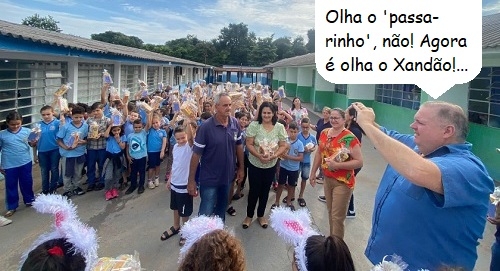 O clic é de Corumbataí do Sul, onde a prefeitura entregou uma caixa de bombons a alunos de escolas municipais e estaduais, e também para os servidores de todos os setores da administração. O prefeito Xandão Donato pariticipou e até fez fotos da distribuição. Portanto, que fique claro: foto do Xandão e não do ex-prefeito Passarinho...
