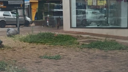 "Av. Capitão Índio Bandeira, esquina com rua Mato Grosso. Mato sobre a calçada em pleno centro. A responsabilidade é de quem? Proprietário do imóvel ou da administração pública?"