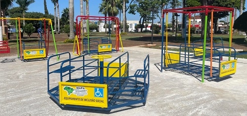 Peabiru - A prefeitura instalou um parquinho com brinquedos com acessibilidade na praça central. São brinquedos adaptados para crianças com ou sem necessidades especiais.