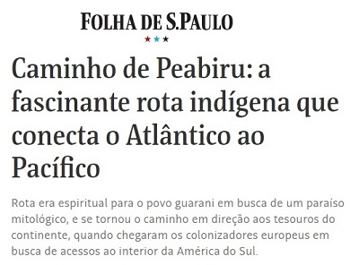 Boca Santa já publicou sobre a reportagem que a jornalista britânica Catherine Balston fez falando dos Caminhos de Peabiru para a BBC de Londres. Saiu o texto em inglês e, depois, traduzido pela BBC Brasil. Desta vez, a mesma matéria foi publicada na seção de turismo da Folha de São Paulo. Pra quem não lembra, Catherine esteve em Peabiru e percorreu a trilha com o historiador Arléto Rocha.