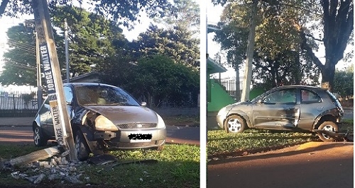 Av. Jorge Walter, quase esquina com a rua Santa Cruz (próximo ao Santuário). Carro bateu em poste e foi deixado sobre o canteiro central.