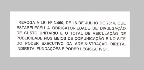 Campo Mourão conta com lei que obriga a prefeitura a divulgar o custo de suas propagandas na própria propaganda.