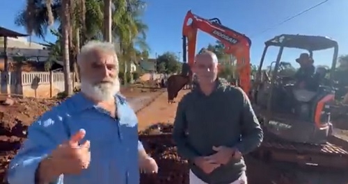 Same Saab, prefeito de Iretama, sobre projetos de recape e calçamentos de ruas da cidade e do distribo de Águas de Jurema; em vídeo gravado ao lado do vice-prefeito Pedrinho da Agrounião.