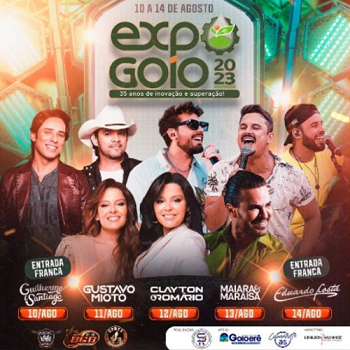 A abertura será com Guilherme & Santiago, com entrada franca (show bancado pela prefeitura).