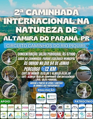 Acontece no próximo domingo a 2ª Caminhada Internacional na Natureza de Altamira do Paraná.