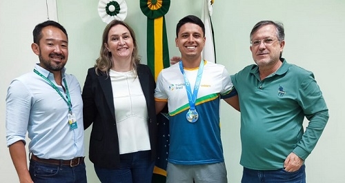O triatleta Henrique Pedroso Silvério, de Campo Mourão, visitou nesta segunda-feira o prefeito Tauillo Tezelli. Ele é bicampeão do Mundial de Aquabike. Conquistou o primeiro título de Abu Dahbi (Emirados Árabes) e o segundo em Ibiza (Espanha). Silvério apresentou a medalha conquistada na prova, com 3 km de natação e 116 km de bicicleta. A presidente da Fecam, Karla Tureck, e o secretário Eduardo Akira Azuma (Inovação e Desenvolvimento Econômico) acompanharam a visita.