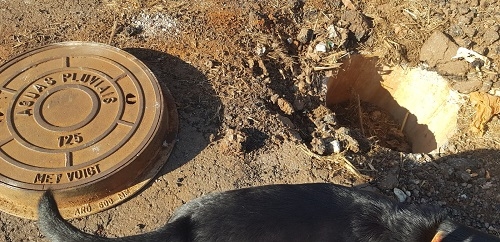 Cruzamento da rua Erminia Laurani com Deodoro Laurani, jardim Novo Centro, bem no meio da rua. Quase um mês nesta situação...
