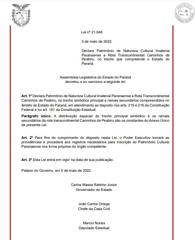 Os ramais dos Caminhos de Peabiru são patrimônio de natureza cultural e imaterial paranaense.