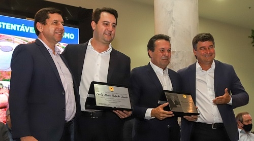 O prefeito de Terra Boa, Edmilson Moura, não foi de mãos vazias, não, a evento do governador Ratinho Jr, na terça-feira, em Curitiba. Levou uma placa para homenagear o governador pelos "relevantes serviços prestados" ao município. Outra placa foi dada ao secretário de Estado Márcio Nunes. O ex-prefeito Valter Peres, que hoje é assessor da Casa Civil, também participou da entrega (e assinou as placas).