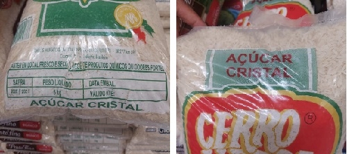 A foto foi feita em Campo Mourão. A embalagem fala que é "açúcar", mas dentro dá pra ver bem que tem arroz. Será arroz doce?...