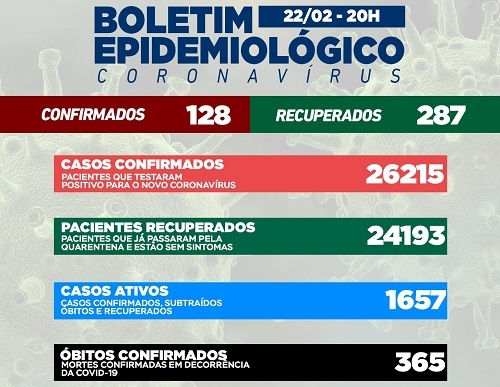 Campo Mourão registrou 128 novos casos de covid-19 nesta terça-feira. Subiu em relação aos últimos dois dias, mas o número de recuperados foi maior: 287. Com isso, os casos ativos voltaram a ter queda e ficaram em 1.657 (já foram mais de 2.900). Na ala covid, a taxa de ocupação de leitos do SUS está em 87% na enfermaria e 60% na UTI.