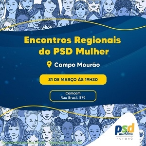 1) O PSD Mulher agendou encontro regional em Campo Mourão. Será no próximo dia 31, às 19h30, na sede da Comcam. A vice-prefeita de Campo Mourão, Fátima Nunes, é filiada ao partido.