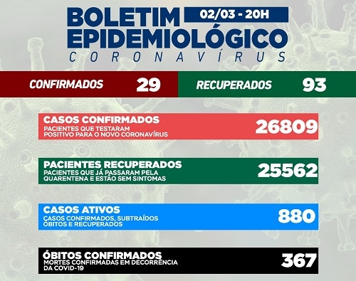 Vinte e nove casos confirmados e 93 pacientes recuperados. Esses foram os números desta quarta-feira no boletim covid de Campo Mourão. Fazia tempo que as confirmações em 24 horas não eram tão poucas (no pior momento chegou a 400). O número de casos ativos caiu para 880.