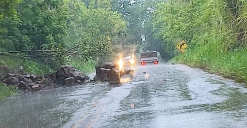 Corumbataí do Sul, saída para Campo Mourão, nesta quarta-feira. Pedras caíram sobre a rodovia.