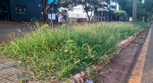 Na av. Manoel Mendes de Camargo, centro de Campo Mourão, tem canteiro central pedindo uma capinazinha...