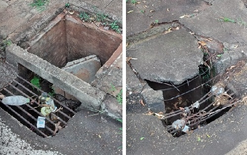 Situação dos bueiros na rua Shuei Uestuka com a rua João Vecchi no Lar Paraná.