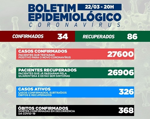 O boletim covid desta terça-feira traz mais uma boa redução no número de casos ativos em Campo Mourão. Agora são 326. Isto porque foram 34 novos casos confirmados no dia, contra 86 recuperações. Na ala covid a UTI continua sem nenhum paciente. Sem alterações também na enfermaria, que segue com dois internados de Luiziana.