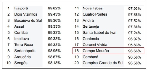 Entre os 25 municípios da região Campo Mourão é o novo líder.