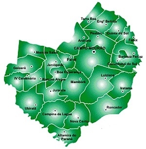 Campo Mourão aparece na frente, com 1.179 empregos, seguido de Goioerê (209) e Ubiratã (205).