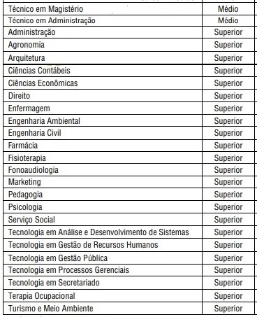Também podem participar alunos de outros 23 cursos superiores e dois de ensino médio (veja acima).