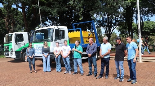 Teve prefeito e deputado nas praças centrais de Camp Mourão o fim de semana. Foi para a entrega de um caminhão poliguindaste, que custa R$ 360 mil. O veículo inclui cinco caçambas. Também foi entregue um caminhão limpa-fossa. Ambos vieram do governo do Estado O prefeito Tauillo Tezelli e o deputado Márcio Nunes estavam presentes, assim como secretários municipais e vereadores.