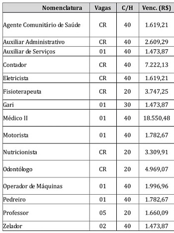 Os salário variam de R$ 1,4 mil a R$ 18,5 mil.