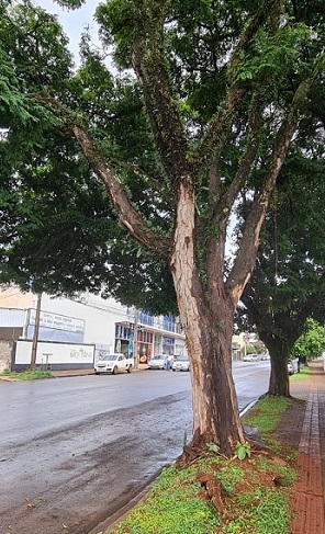 Árvore prestes a cair na rua São Josafat, próximo à Unespar. Já está com a raiz exposta.