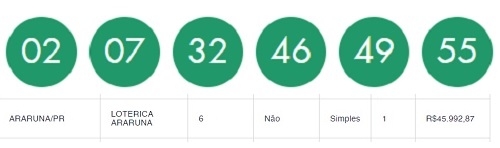 Uma posta de Araruna acertou cinco dos seis números da Mega Sena de quinta-feira. Resultado: ganhou RF$ 45,9 mil com a quina. Se tivesse acertado um numerozinho a mais o prêmio seria de R$ 41,2 milhões. Ninguém acertou as seis dezenas e o prêmio ficou acumulado para o próxilm,o sorteio, que deve chegar a R$ 48 milhões.