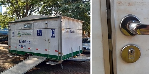 O sanitário móvel da prefeitura está há vários dias na praça Getúlio Vargas. Só que está trancado...