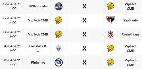 Depois serão mais quatro partidas - São Paulo (dia 6), Corinthians (8), Fortaleza (10) e Pinheiros (13).