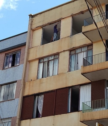Flagra na tarde desta segunda-feira em prédio na rua Brasil, centro de Campo Mourão.