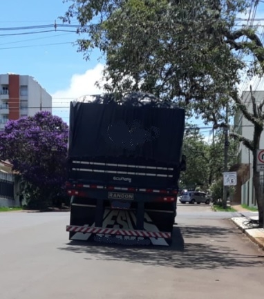 "Carreta estacionada quase no meio da via, na rua Brasil, em Campo Mourão".