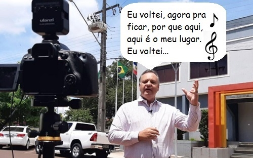 O clic é desta quarta-feira, em Ubiratã, onde o prefeito Fábio D"Alécio parece estar cantando, mas na verdade está apenas gravando vídeo para falar dos primeiros dias à frente do executivo municipal. Primeiros dias do terceiro mandato, é bom que se frise, afinal, D"Alécio voltou após oito anos fora do poder local...